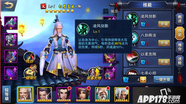 八卦阵法:在自身周围释放八卦阵法,增加此区域内的友军n点攻击,持续5秒