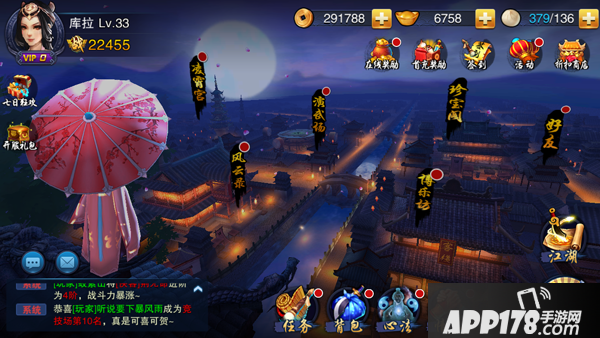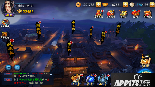 7、江湖:另一个主城,在江湖中你可以占领据点获得资源,还可以遇到各种奇遇,有任务、有答题还有拼图等,都会有一定的奖励哟。