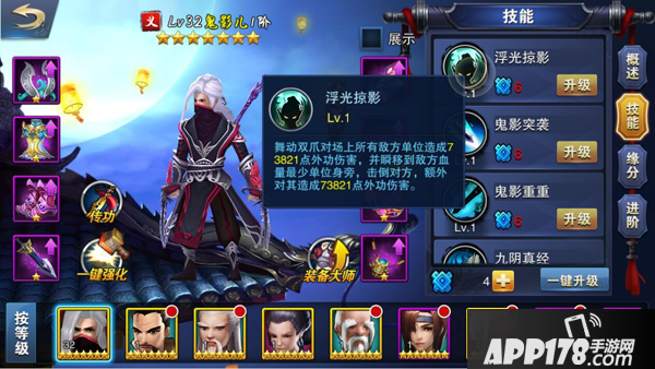 作为完美品质的侠客,他的属性不容置疑,作为输出职业,他的技能整体来说偏向于暗杀系,可以在敌人脆弱的时候乘其不备将其了结,如果没有天机老人的情况下,也可以着重培养他,他的攻击力还是值得期待的。