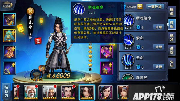 断魂绝命:把单个敌方单位挑起,快速对其造成多段伤害,每次造成n点外功伤害,挑起5秒,自身驱散并免疫任何负面效果,被挑起单位不能进行任何操作