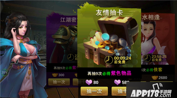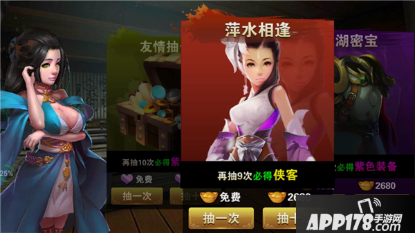 客栈系统里面有萍水相逢、江湖密宝和友情抽卡