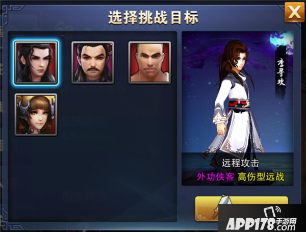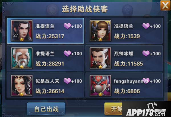 根据提示,选择适合出战的侠客。战力越高越容易。