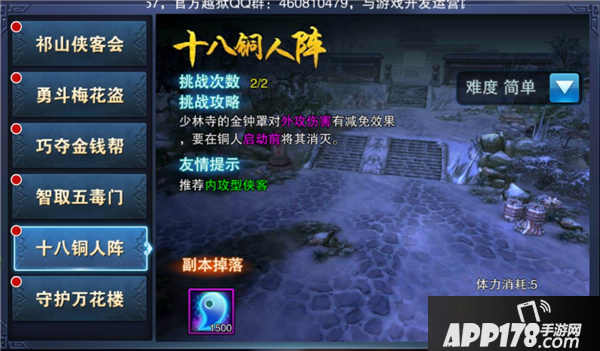 5.十八铜人阵这里掉落大量勾玉,可以给情缘技能升级。Ps:这里要尽量选内功侠客来挑战