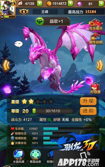 要数驯龙战机3D里什么飞龙最多,要数风系飞龙了。晶歌就是风系飞龙。晶歌可以克制雷属性关卡,对雷属性属性怪物可以造成125%的伤害加成,可以用来克制雷属性的关卡boss,同时会被火、光、暗三种属性克制。