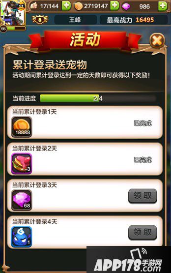 累计登陆2天——汉堡*3(高级的食物,可以提供2500点经验值)