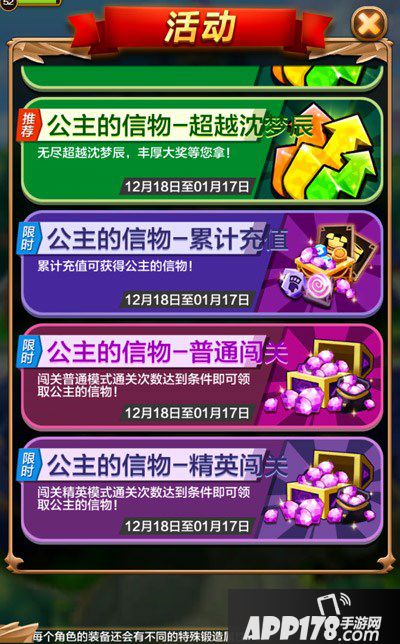 公主的信物系列活动分为:无尽模式超越沈梦辰,普通闯关达到指定次数,精英闯关达到指定次数,挑战无尽达到分数要求,累积登录等活动都是可以获得公主的信物的。当我们手上钻不多的时候,只有靠自己的努力和技术来拼一把啦!