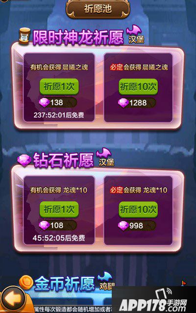 作为各位土豪们,害怕不能获得晨曦吗?技术不够,钻石来凑!这里有限时神龙再次推出,在12日之前参加限时神龙的抽取活动,十连必得晨曦的好么!同时,当钻石祈愿达到指定的数目还可以领取晨曦魂魄!最高可获得80晨曦魂魄!