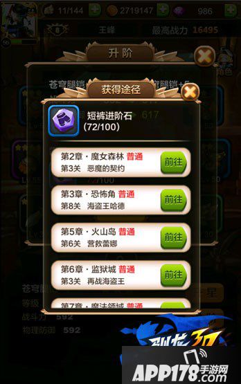 需要消耗道具短裤碎片。玩家可以从精英关卡第2章第4关、第3章第7关、第5章第2关、第6章第4关、第7章第7关、第9章第2关、第10章第4关、第11章第7关第、11章第7关来获得。苍穹腿铠升星需要玩家每日扫荡精英关卡来累积获得,同样随着升星等级的提高需要短裤碎片的数量也随之提升。(装备最高品质为橙色装备,4星可提升为紫色品质)