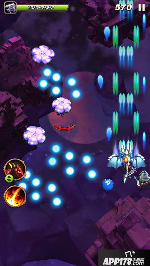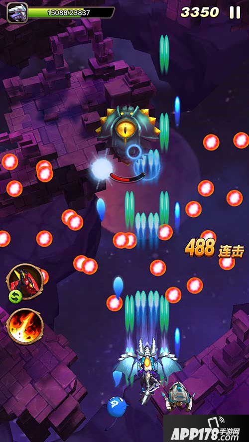 大小蜜蜂很好对付,它们的子弹速度虽然够快,但咱们的子弹威力更大啊,对它们简直就是秒杀。妖花一般3个一组出现,发射圆形3列一组的子弹,由于子弹个头蛮大,妖花一旦发动攻击那都是密集型的,这需要玩家处在与妖花相左的位置来躲避子弹。另外妖花还会有规律的先向下喷射大量子弹,再向上喷射大量子弹,如此反复,我们只需先在上面,再换到下面位置,就能躲避这种子弹了。