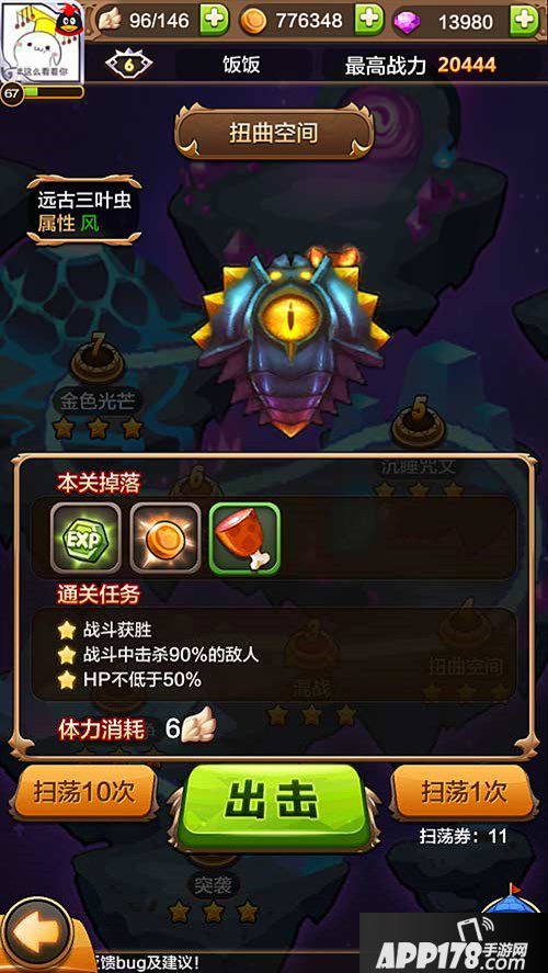 本关建议战斗力为11880,BOSS是风属性的远古三叶虫,火、光、暗系飞龙可以克制。这关可以选择火属性的飞龙进行战斗,只要装备过硬,40级的黑锋和钢铁就足够应付了!本关卡的怪物主要有大小蜜蜂、妖花、远古三叶虫。这里的小怪有个特点,就是成群结队的出现,且节奏相对较快,当我们消灭完一波,绝对不会给我们喘息的机会,第二波就迅速接上。但是,怪物的进攻节奏快,我们的消灭节奏就更快啦!