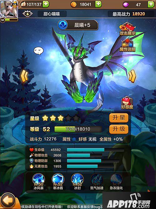 喜欢晨曦不仅仅是属性的优势,还是技能的优势,更是攻击导弹的优势,之前我称钢铁为智能钢铁就是因为钢铁的弹道轨迹是追踪的。兼备了集中攻击和追踪攻击的晨曦是集中主力攻击弹道、多重辅助追踪弹道。使得实际战斗中能够迅速压制全场。通过集中且强力的主力弹幕,在战斗中专心对战强力BOSS。而飞龙两翼存在的辅助弹幕更是具备追踪功能,能第一时间清除小怪。这样子就避免了一直追踪小怪的钢铁的劣性,使得现在晨曦是我最宠爱的战龙之一。