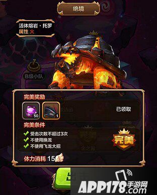 那么我们该如何选择呢?比如挑战模式,大家可以发现挑战模式非常任性,三星通关条件苛刻而有趣:获得总积分12000;不能换龙;不使用大招;受攻击次数不能超过3次;使用飞龙大招击杀boss……如此多的任性条件使得我们在选择闯关的时候也要好好挑选并肩作战的飞龙。