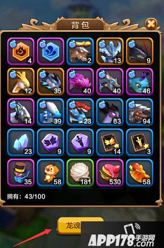 首先在主界面点击自己的背包,因为这个系统需要使用自己的龙魂进行合成,所以当然首先要进入自己的背包中啦,然后在背包系统的最下面就可以看到飞龙兑换的按钮了。