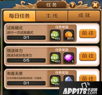 想要快速闯关成功,作为一个0元党还有就是多做任务,还要去的地方就是任务了。每天都要记得去查看自己的任务栏,明确一下哪些是每天都可以完成的,哪些是需要道具才可以完成的,自己明确下然后一步一步去完成,这样可以使自己的钻石产量很多。