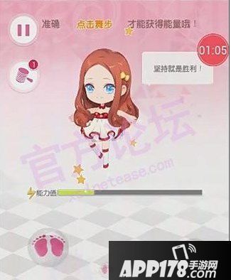 准确点击舞步就会有星星飞上分数条,增加分数(能量)