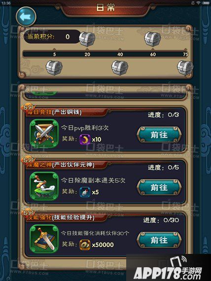 每天共有16个日常任务,每个任务5分,累计积分可以开启日常上方的宝箱,也就是说,每天只要完成15个任务就可以了。下边小编就来为大家来一一介绍各任务的详细情况。