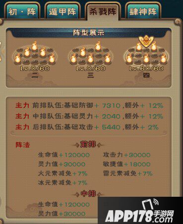 一、阵型升级,战力提升200万+,防御提升当然更耐打了,四种阵型,因人而异,110级可以升满60级,需要花费2100元宝,本人双敏队伍选了遁甲阵4和杀戮阵4,打boss和副本用遁甲阵,PK选杀戮阵,感觉还不错。