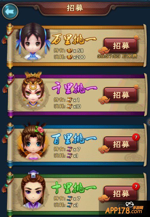 a) 看下面图解就很清楚啦,要说明的是,除了第一个,其他全部都能直接在游戏内获得道具招募,这点上,貌似这个游戏还挺良心的。