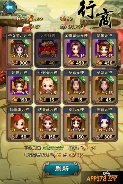 b) 你问那个除了铜钱另外的东西是啥?哦,那个叫信物,当你手贱十连抽,抽到无用的卡牌,就可以炼化了,炼化之后就会得到信物了。(只有紫色或者橙色的才可以炼化)