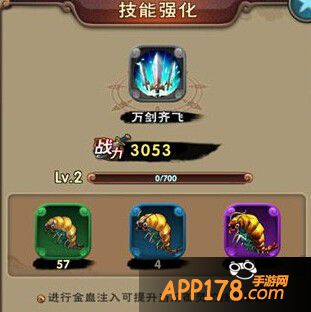 技能强化为通过注入金蛊来获得经验提升御灵的技能等级,强化升级后技能伤害提升。