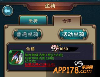 目前游戏中仅有飞剑和仙鹤两种坐骑,除了这两种普通坐骑外,还有活动坐骑的选项,不过就是目前暂时是空的,相信后面会加入更多的坐骑。