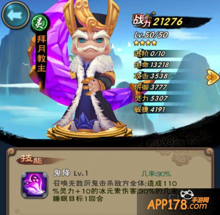 姜清的媳妇,和姜清一样都是输出非常强的存在,就是天鬼皇的三星版,如果玩家VIP等级够高,前期可以用月柔霞代替天鬼皇的位置。