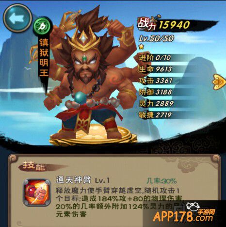 镇狱明王,一星平民卡,推荐给月卡党和0元党做过渡卡。单体输出,主要用来收割和门派boss的,60级以后就可以丢了。v4以上不要弄了。
