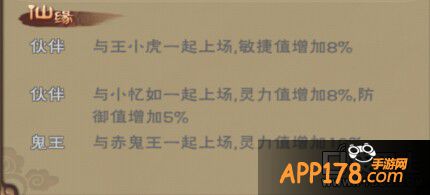 小编点评:我们已经了解了天鬼皇技能对于灵力的需求,所以三个仙缘中加灵力的两个必不可少。这可不是为了凑仙缘而随便搭配的阵容哦,一会儿介绍阵容搭配的时候小编会详细说明天鬼皇、赤鬼王和小忆如这三人搭配起来有多恐怖,恰恰是这两个和天鬼皇有仙缘的人能把他恐怖的输出能力最大化。正所谓仙缘天成。