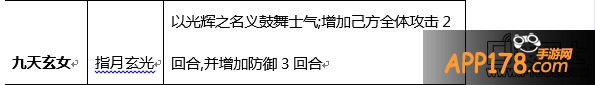 指月玄光:以光辉之名义鼓舞士气;增加己方全体攻击2回合,并增加防御3回合。