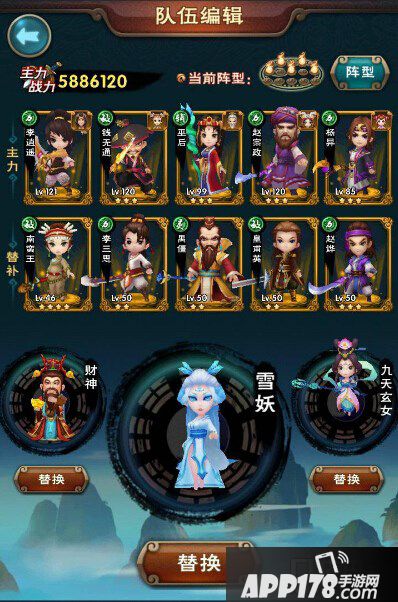 阵容推荐:主角+钱多多+巫后+赵宗政+杨异。御灵:雪妖、九天玄女、财神。