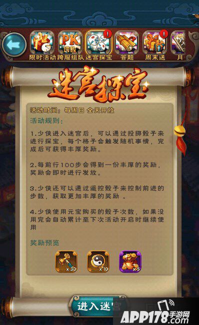 3.迷宫可能同服共享。已经被开过的箱子是没有奖励的(待考证)100步奖励不在其中。