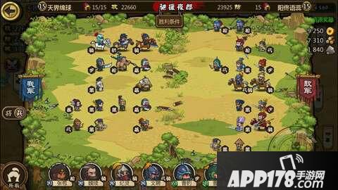 在战斗布阵界面我们可以看到详细的敌军阵型布置,在小小三国之中,武将的选择和排兵布阵非常的重要,有时候在战斗力要低于对方20%的时候,都能够通过找过敌方的阵型漏洞以弱胜强。