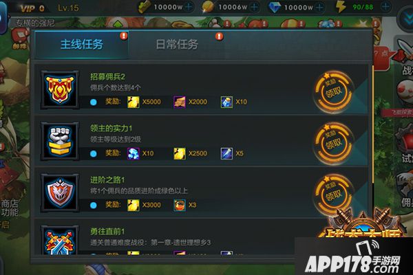 在《战术大师》中,游戏的任务主次分明,分别为主线任务和日常任务,想升级快点的玩家可直接领取日常任务,性格随和比较有耐性的玩家可以做主线任务推进剧情,其实,主线和日常这两个分明得任务是相辅相成的,做日常任务是为了快速升级,升级后提升战斗力,有了战斗力才能在主线进展中更流畅;主线任务的进展需要靠做日常任务提升等级从而提升战斗力来辅助。所以,它们都是每日必做的!