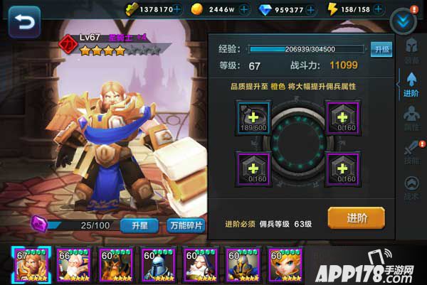 佣兵进阶需要对应种族的建筑、佣兵等级、强化精粹、晶石(精粹和晶石可通过副本获得)
