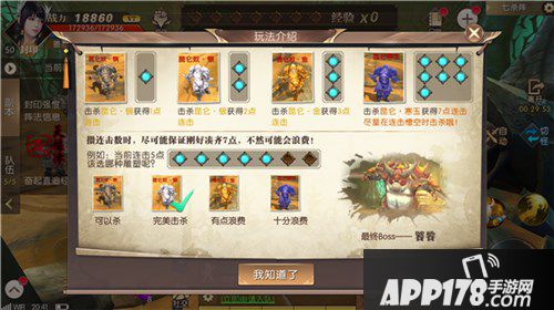 作为新手玩家第一次进入七杀阵的话都会有一个打法提示,击杀昆仑奴·铜可以获得一点连击,击杀昆仑奴·银可以获得2点连击,击杀昆仑奴·金可以获得3点连击,击杀昆仑寒玉可以获得7点连击。完成所有阵就会解封boss饕餮,击杀饕餮就可以顺利通关了。