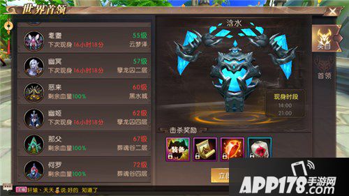 每天14:00和21:00,各野外和地宫的头目都会重新现身。