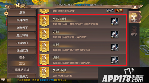 需要注意的是玄海有以下四个成就:反败为胜——【玄海演习场】中一度落后500分但是成功翻盘;好险——【玄海演习场】中领先10分以内获胜;完胜——【玄海演习场】获胜时占领5个积点;速胜——【玄海演习场】获胜时用时5分钟之内。