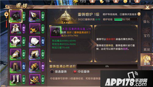 重铸时会增加重铸值,重铸值满时进行重铸,必定提升装备的品质。重铸值是随机的,没有固定的。我们的装备重铸之后会有一个保留原属性和采用新属性的选择,勇士们可以根据属性条目来选择自己心中想要的。