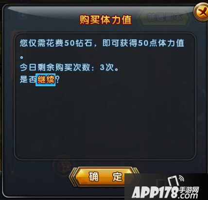 2、花费50钻石购买50体力,相当于1体力等于1钻石。并且每天还限购的,每天最多只能买3次体力。