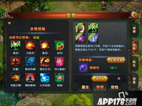 1、宠物通过领悟来增加自己的技能。