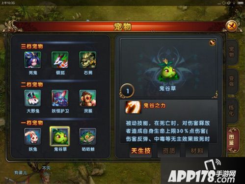 宠物就是玩家的宝宝,最忠实的伙伴,每个宠物都身怀绝技,与众不同。下面口袋小编给大家带来的是鬼谷草的属性和技能介绍,一起来看看吧。