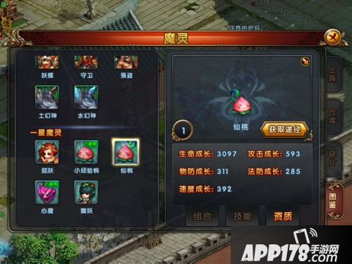 先特别提示:一星魔灵里面有个小经验桃,和仙桃长得是一毛一样,可千万小心,经验桃没有什么成长,就是魔灵的粮食!!