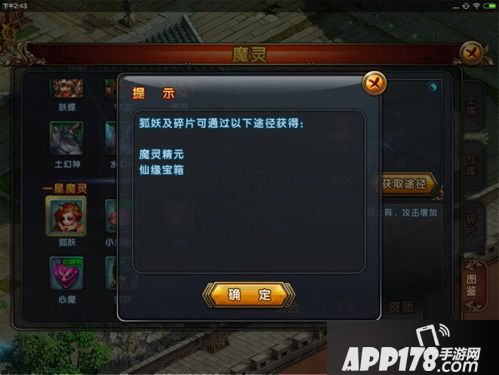 狐妖获得途径:狐妖及碎片可通过一下途径获得:魔灵精元、仙缘宝箱
