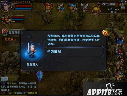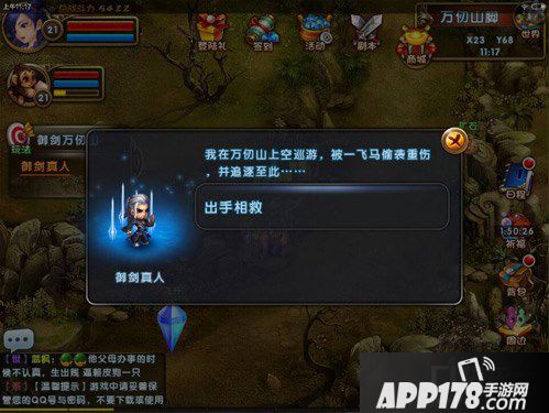 首先找到御剑真人,他身受重伤,此时主角毕竟出手相救,击败一个马一样没有名字的怪物,可以起开始带你装B带你飞了。