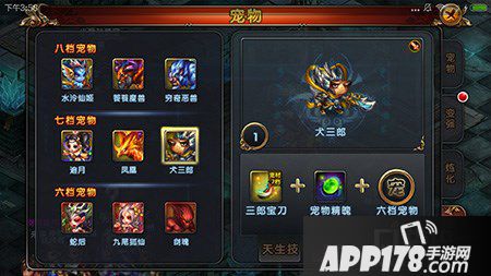 宠物合成:三郎宝刀+宠物精魄+六档宠物就能合成犬三郎了。