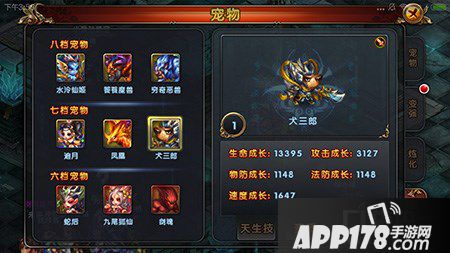 从上图所示,我们看出与其他七档宠物是属于基本是没撒区别,涨幅不大。与追月几乎差不多的属性。