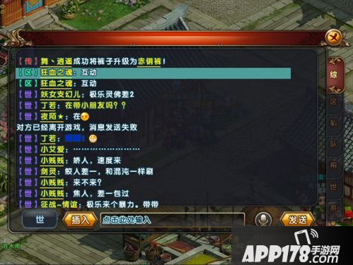 默认的聊天框是综合的,下面可以切换单独的私聊对话框,这一点还是比传奇要高级的,不过小编还是想吐槽,一点都不方便啊有木有,离线还不能留言不是坑爹吗!