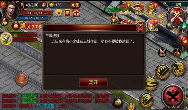 王城统领-对白:近日来有宵小之徒在王城作乱,小心不要被我逮到了。