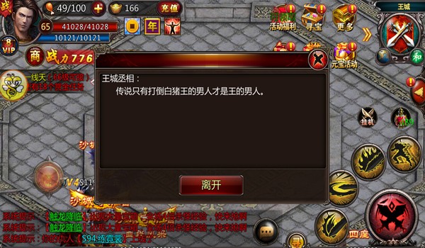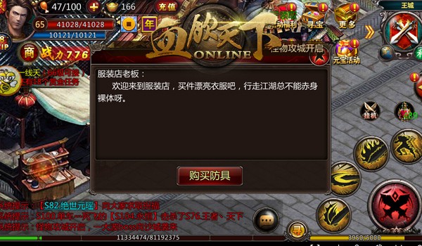 看了《血饮天下》那么多NPC对白后,小编认为最劲爆的还是美女服装店老板跟你说“裸体”的那些事情;最点明游戏中心的对白当属帮会使者说的,“无兄弟,不传奇”,有兄弟在的游戏才好玩。