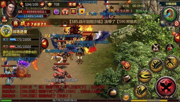 接下来就是PK了,十年前的传奇是只要不在安全内,随处可以对玩家进行PK,为了个人恩怨,装备归属等而造成的血案数不胜数,看着生命中的骄傲(极品装备)掉落在地,手机屏幕变为黑白,那一刻心中的悸动……已经不言而明。当然一番江湖仇杀之后,敌人已被斩首之后落在地上的屠龙、裁决什么的相信也可以让取得胜利的一方获得那种目空一切的大刺激、大满足,简直让人身心激荡,欲罢不能。玩了下《血饮天下》关于这点做的比较贴合,以至于不打足精神根本不敢进入矿洞这些地方……进去就被一堆人打,被打死了还要掉东西,相信每个人都不希望自己是被打死的那一方。独特的是《血饮天下》还加入了一个20V20的跨服战场玩法,以前从来没接触过,感觉这种一个人PK不爽,那就20人一起上的玩法十分有趣。